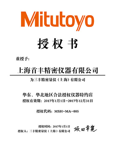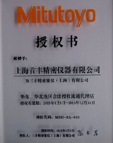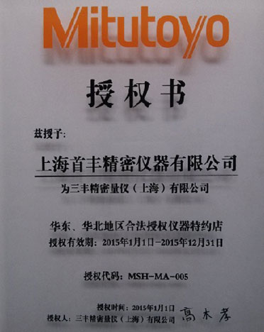 公司于2013年至今連續(xù)十年取得華東、華北合法授權流通代理店和華東、華北合法授權儀器特約店等資格證書,測量儀器類為三豐公司五星級代理,具有強有力的價格優(yōu)勢。2021年,公司秉承"顧客至上,服務優(yōu)先"的經營理念,堅持"竭誠服務"的原則為廣大新老客戶繼續(xù)提供更優(yōu)質的服務!