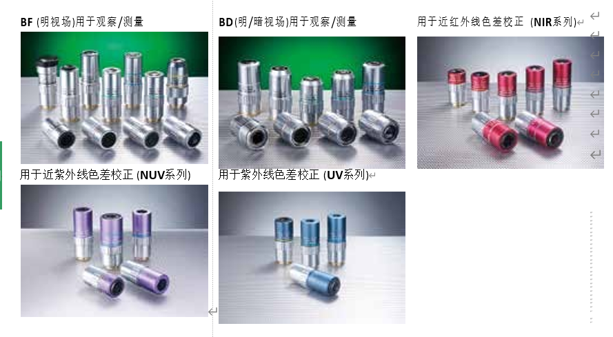 璃觀察真空爐內(nèi)的玻璃厚度校正透鏡G Plan Apo系列等,近紅外~可視~紫外的各種波長(zhǎng)范圍的物鏡種類。