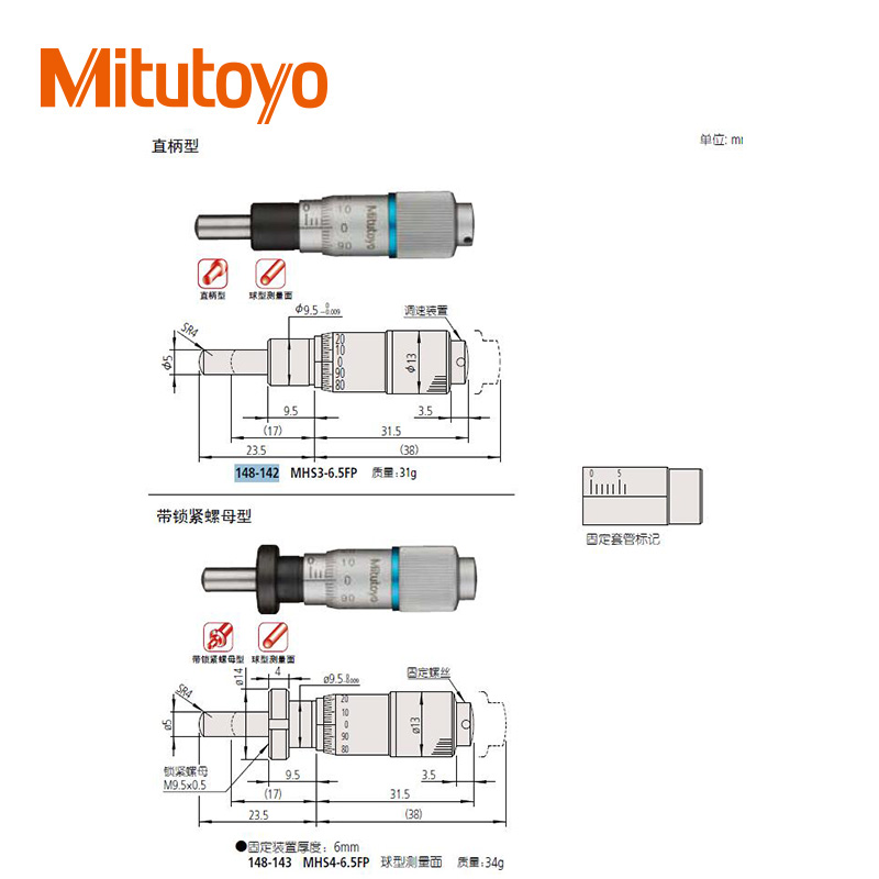 • 測(cè)微頭帶有可調(diào)零微分筒的小型化標(biāo)準(zhǔn)型(0-13mm)