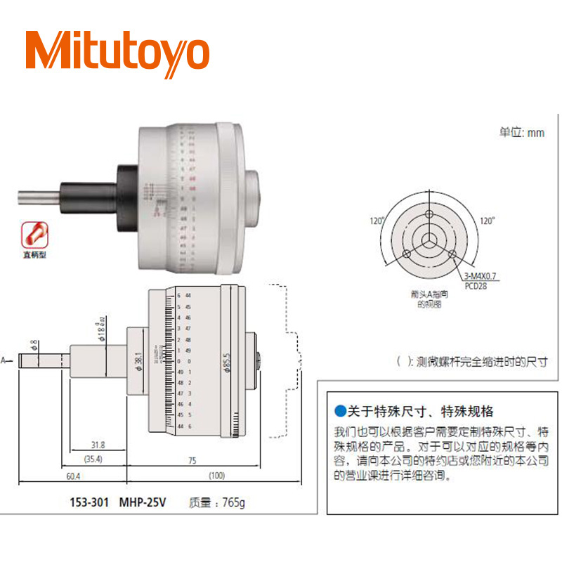 • 測(cè)微頭直進(jìn)式測(cè)微螺桿型(0-25mm)