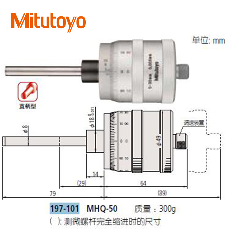 • 測(cè)微頭直進(jìn)式測(cè)微螺桿大直徑微分筒型(0-50mm)